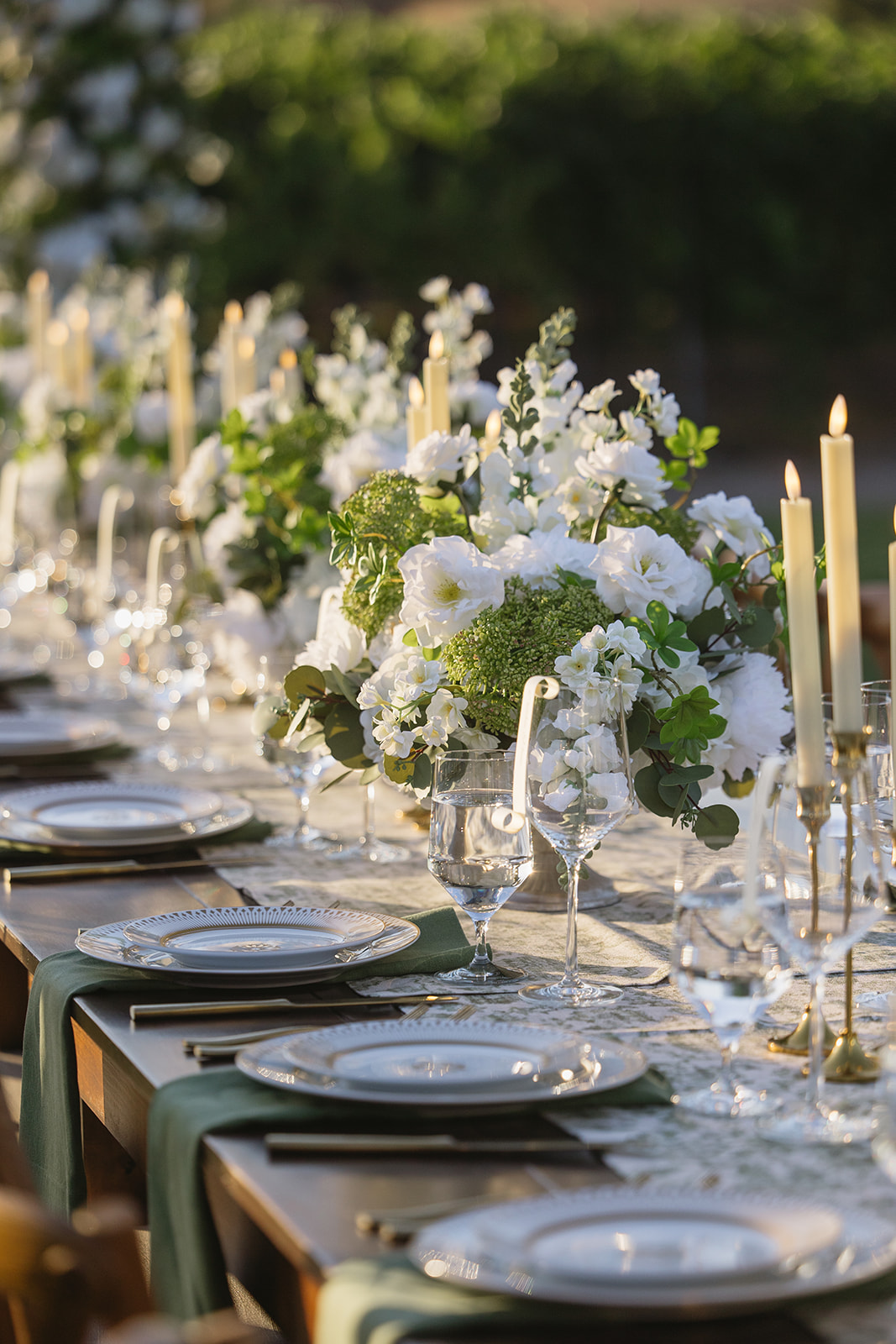 Bring the romantic essence of Tuscany to your vineyard wedding. Decorate with olive branches, rustic terracotta pots, and wooden wine barrels. Enhance tablescapes with candles, fresh herbs, and citrus fruits. Serve an authentic Tuscan-inspired menu featuring rustic breads, cheeses, and charcuterie, paired perfectly with Zaca Mesa wines.
