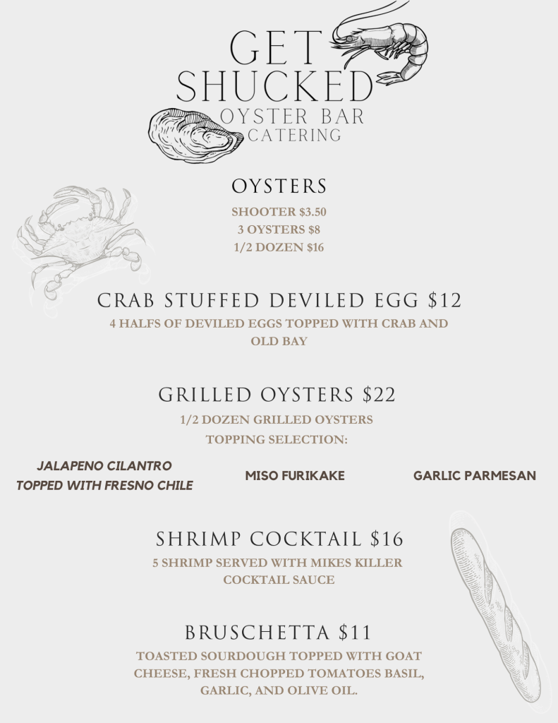 Delicious seafood from Get Shucked Oyster Bar Catering will be available for purchase!