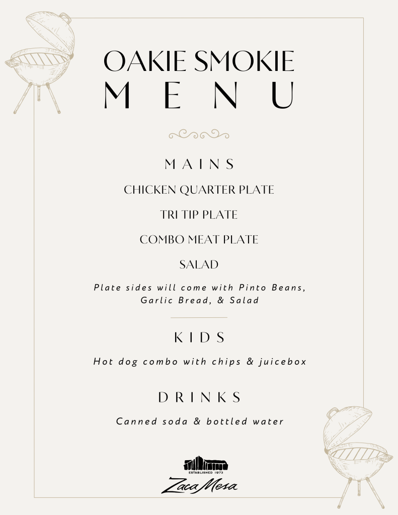 Indulge in a delightful fusion of wine and barbecue, where savory aromas mingle with our exceptional wines. Enjoy live music from Jimmy Becker, picturesque vineyard views, and a warm, welcoming atmosphere perfect for honoring dads and creating unforgettable memories with family and friends. Delicious food will be available for purchase from Oakie Smokie’s pop-up! Mark your calendar and join us for a day of relaxation, good company, and exquisite flavors under the summer sun.