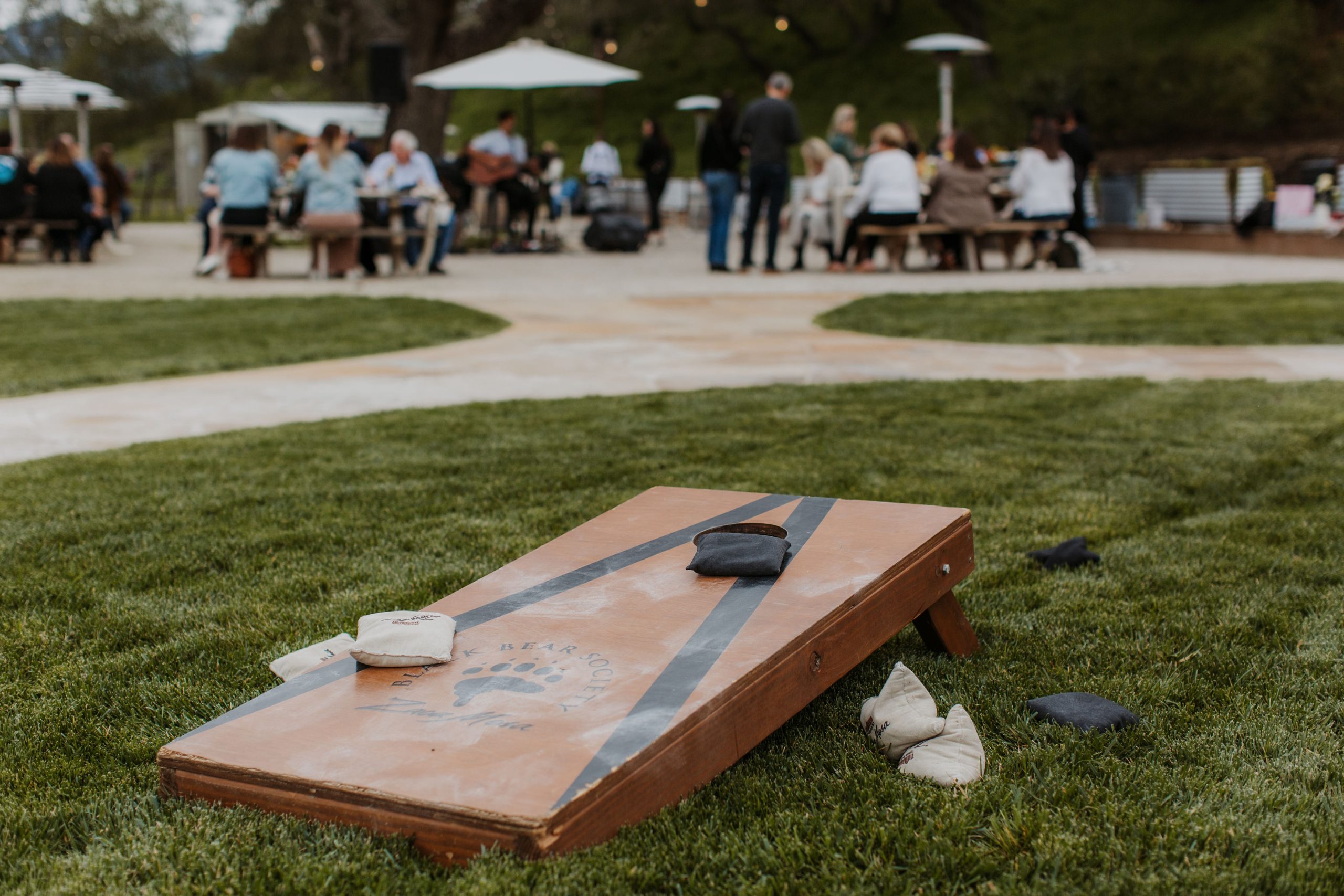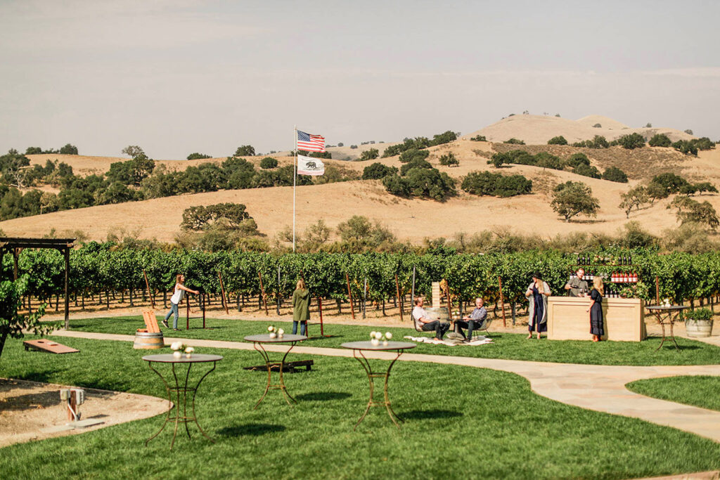 Our beautifully manicured lawn, bordered on three sides by our organically farmed Grenache Blanc vineyard, provides the perfect backdrop for any party. A great place for yard games and gatherings, the Vineyard Lawn creates an inviting outdoor setting that guests will remember.