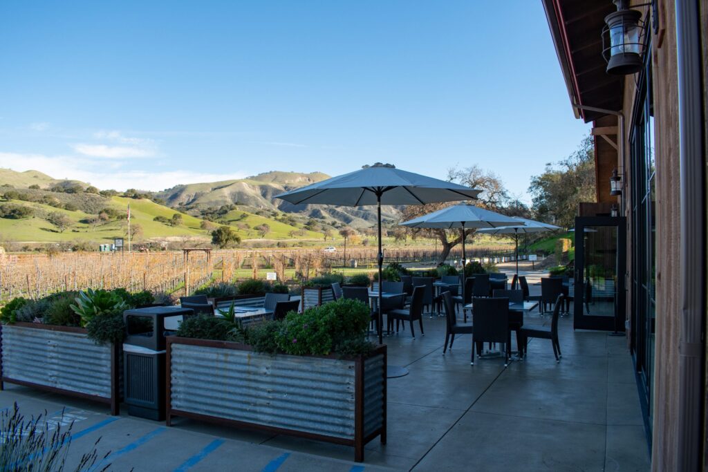 Once a barrel room, this stunning space has been transformed into an elegant indoor venue, perfect for parties in the Santa Ynez Valley. Adorned with six impressive chandeliers and 9-foot tall glass doors that offer panoramic views of the vineyard, the View Room’s neutral palette allows you to personalize it to suit your event, whether it’s a milestone celebration, birthday party, or special gathering.